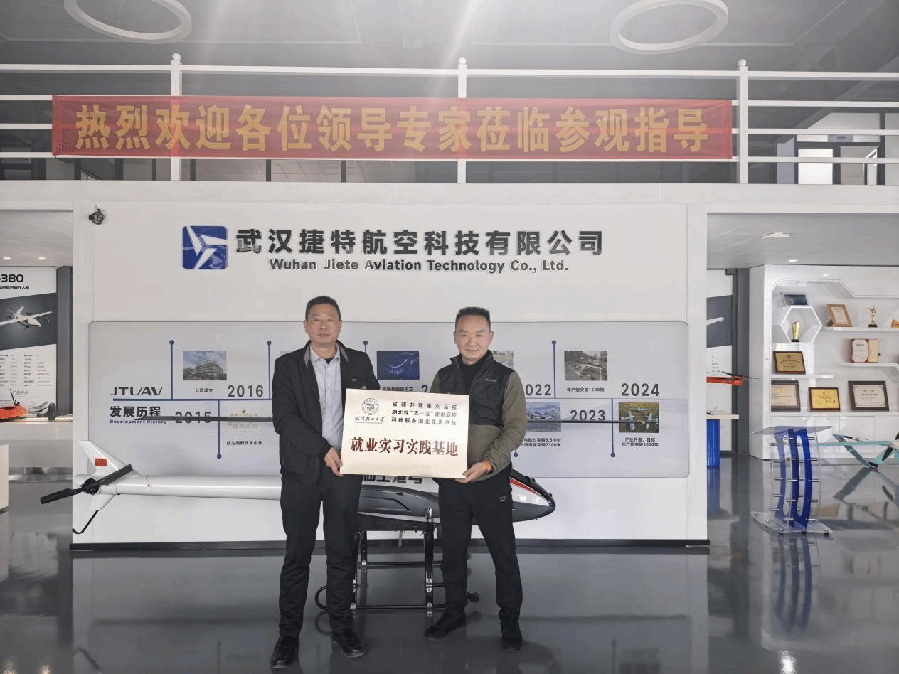 在武汉捷特航空科技有限公司,公司董事长刘先伟陪同房桂兵一行参观企业无人机展厅,详细讲解无人机研发成果、场景应用及业务布局,并围绕人才需求、校企合作开展座谈交流。