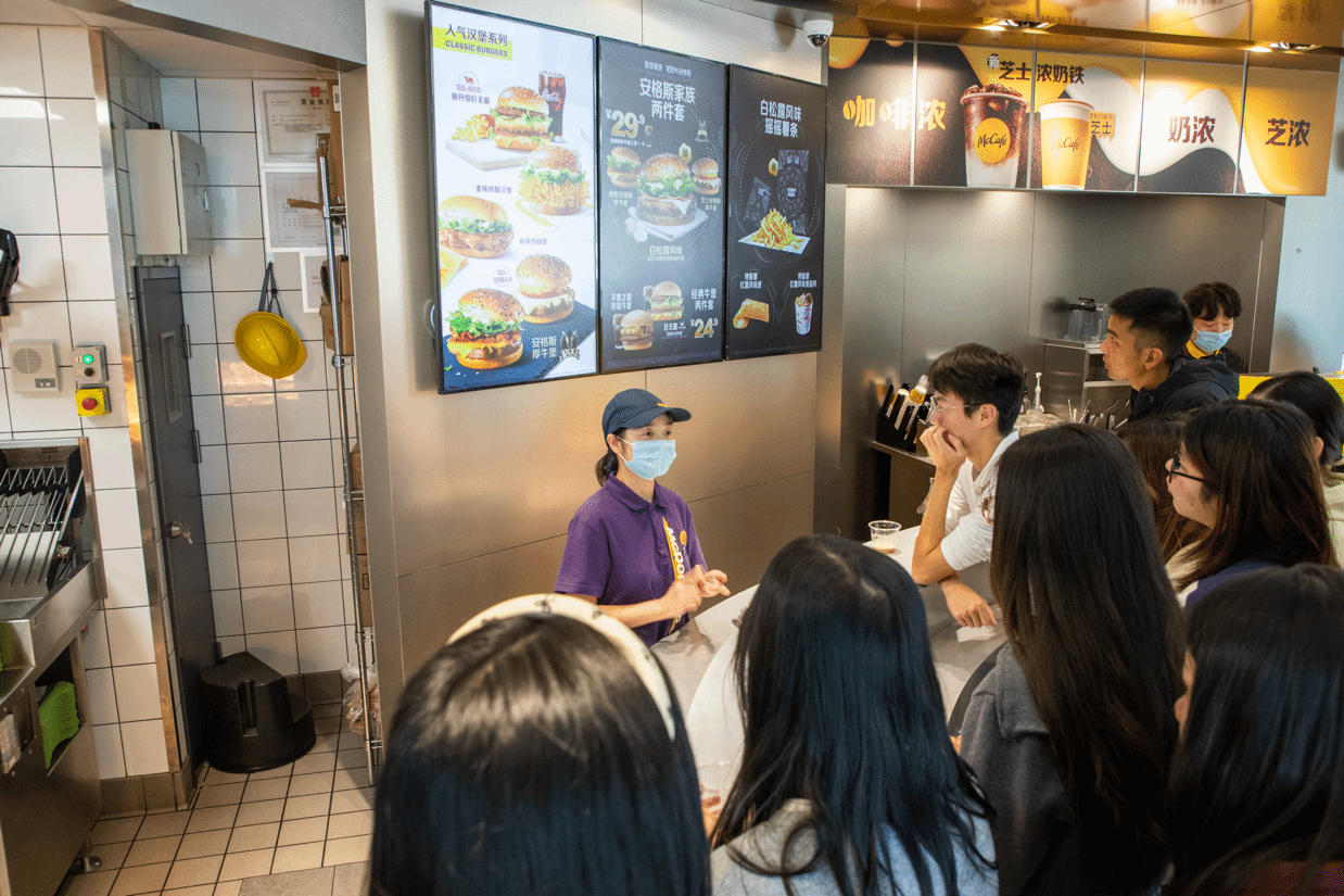 为持续探索“校企联动、实践赋能”的人才培养路径,将企业资源转化为育人动能,为学生职业发展注入强劲动力,10月23日下午,管理学院组织学生代表前往武汉市东西湖区金银湖199+购物中心麦当劳门店开展“全景式职业体验”活动。管理学院辅导员王世龙、熊子铭带队。