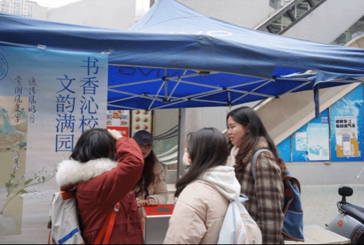 12月4日,管理学院团委学生会外联部及学建部,在金银湖校区银湖餐厅门口和常青东校区芸园楼下成功举办了“书香进校园”活动。本次活动以“书香沁校,文韵满园”为主题,旨在全面营造“爱读书、读好书、善读书”的校园文化氛围,引导师生在阅读中汲取智慧、涵养品格,共同品略书香盛宴。