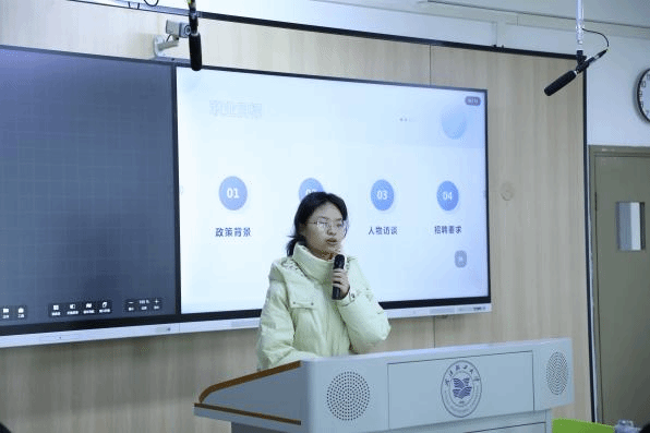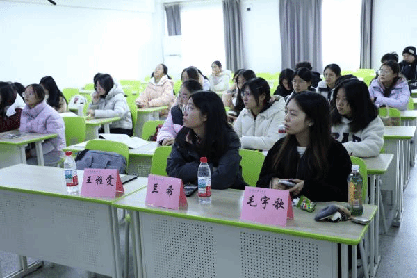 王雅雯通过系统分析职业发展趋势和综合技能,为同学们分享了在大学生活中提升职业竞争力的有效办法。她强调,要把专业知识与前沿技术、政策有机融合,积极参与创新创业活动,提高自身技能水平。
