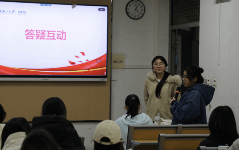互动问答环节,同学们围绕跨专业保研、时间管理、院校选择等热点问题与嘉宾们展开深入探讨。三位嘉宾结合自身经验,耐心解答了同学们在课程学习、科研实践、竞赛参与等方面的困惑,现场气氛热烈。