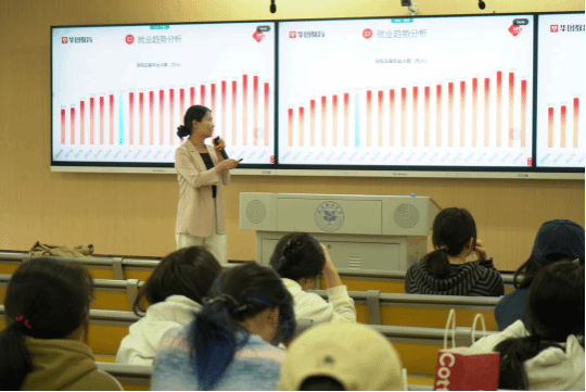 本次活动以“赋能求职·筑梦前程”为主题,特邀湖北华图专职教师周汝郡,为百余名师生带来一场干货十足的就业指导盛宴,同步开启现场招聘,搭建“技能提升+岗位对接”一站式求职服务平台。