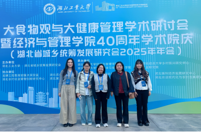 2025年11月15日,由湖北工业大学与湖北省城乡统筹发展研究会联合主办的“大食物观与大健康管理学术研讨会暨湖北省城乡统筹发展研究会2025年会”在湖北工业大学举行。本次会议紧扣习近平总书记提出的“大食物观”理念,围绕食物安全与资源可持续开发、轻工食品企业经营管理创新、营养健康产业链构建等核心议题展开跨学科研讨。管理学院王锐副院长、马艳副教授应邀带领2024级公管研究生刘博远、2025级公管研究生胡颖芳及2025级农管研究生马璇参会。